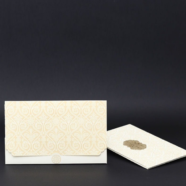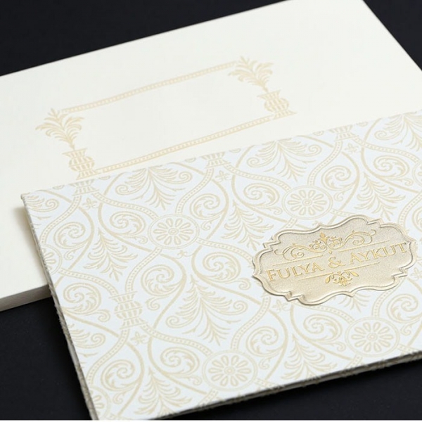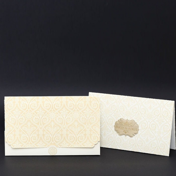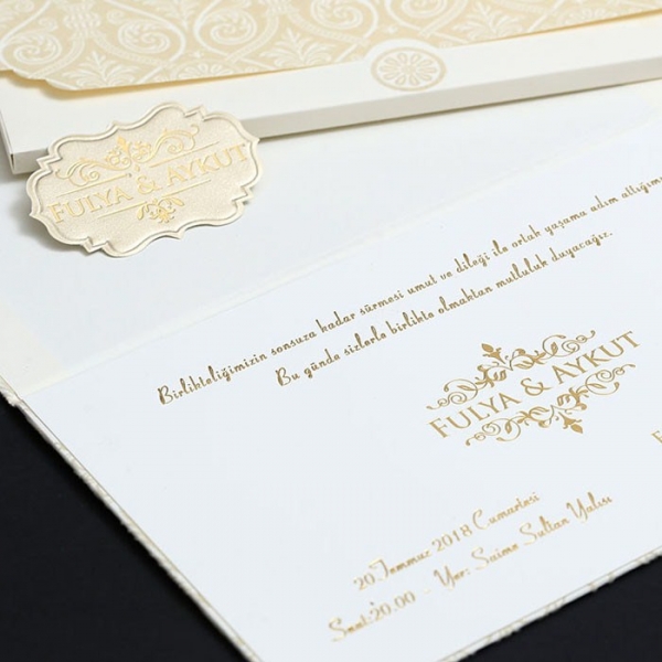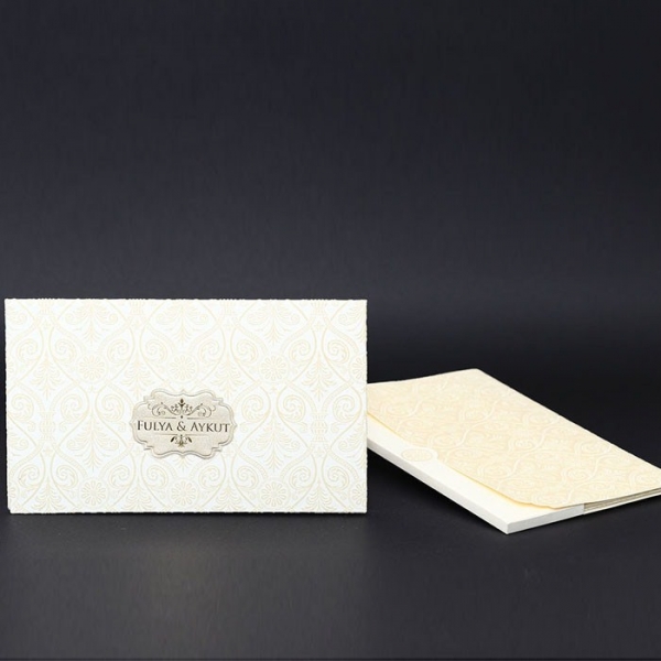 | Özellikleri | Davetiye Krem renklerde kadife zarfı olan bir modeldir. Bilgilerin yer aldığı kağıt kadife kaplı olup kalın mukavvadır. |