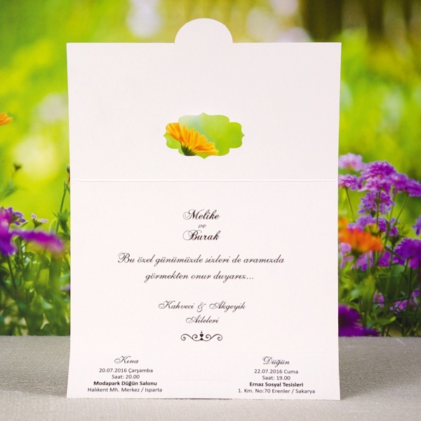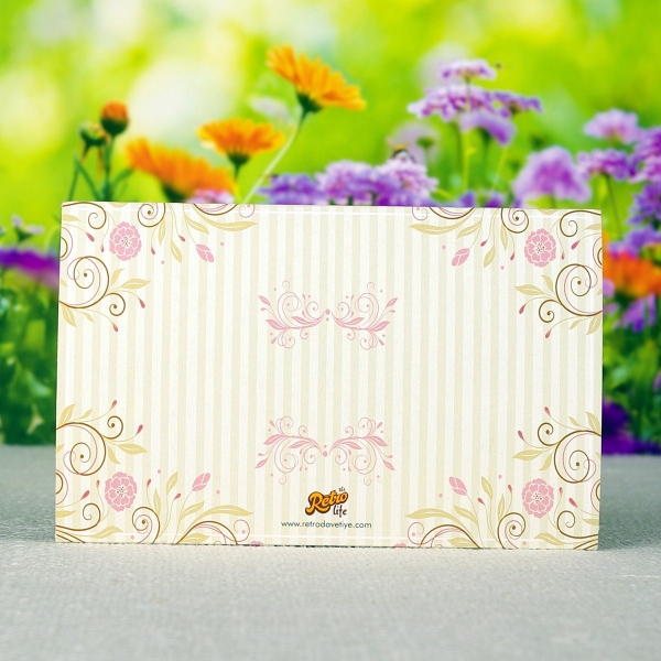 | Özellikleri | Retro Davetiye 307 pastel renklerinde basılmış çiçek desenlerinden oluşmaktadır. |