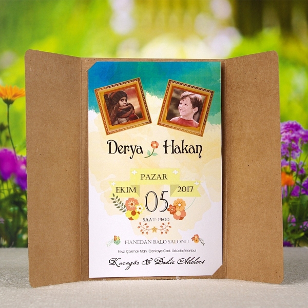 | Açıklama | Retro Davetiye 347 davetiye zarfı üzerindeki ipi ve kartı ayrıca takılmaktadır. Bu davetiyeye sizin fotoğraflarınız basılabilir. Fotoğraf yükleme butonu aşağıda yer almaktadır. |