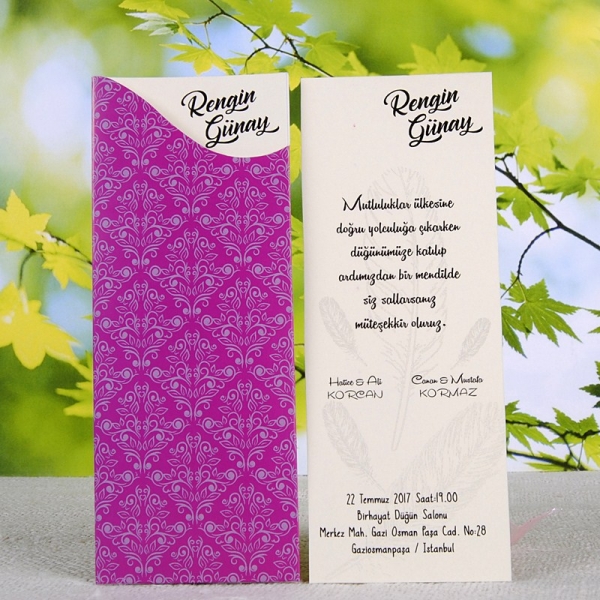 | Açıklama | Retro Davetiye 329 mor tonlarında bir davetiye olup bilgilerin yer aldığı krem renginde kağıt üstten çekilerek okunmaktadır. |