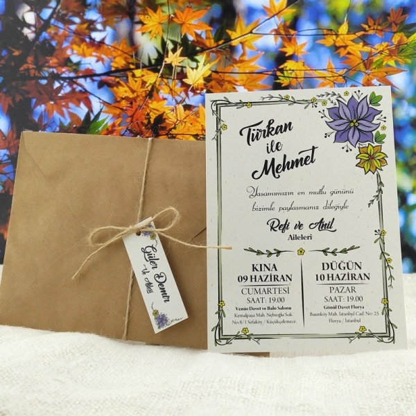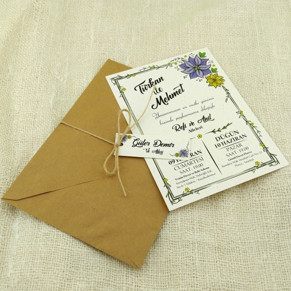 | Açıklama | Retro Davetiye 346 eskitme kraf zarf, hasır ip ve isim etiketi ile birlikte gönderilmektedir. |