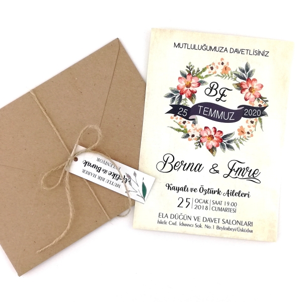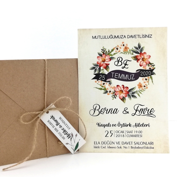 | Açıklama | Retro Davetiye 373 renkli zarf, hasır ip ve size özel isim etiketi ile birlikte gönderilmektedir. |