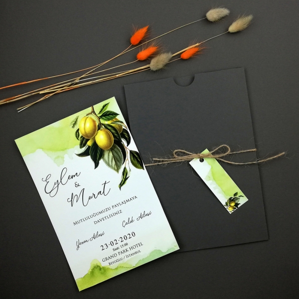 | Açıklama | Retro Davetiye 399 koyu yeşil zarf, hasır ip ve isim etiketi ile birlikte gönderilmektedir. |