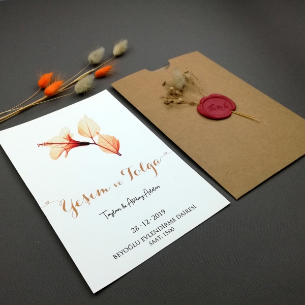 | Açıklama | Retro Davetiye 402 eskitme kraf zarf, hasır ip ve isim etiketi ile birlikte gönderilmektedir. Mühürlü davetiye modeli olarak hazırlanabilmektedir. Mühür baskısında Baskı süresine +3 gün eklenmektedir. |