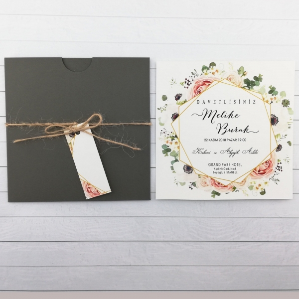 | Açıklama | Retro Davetiye 434'ün zarfı kalın kağıttan yapılmıştır. İp ve isim etiketi ile birlikte gönderilmektedir. |