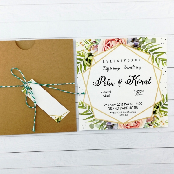 | Açıklama | Retro Davetiye 436'nın zarfı kalın gramajlı kraft kağıttan yapılmıştır. |
