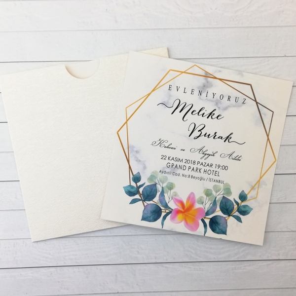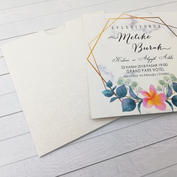 Açıklama Retro Davetiye 440'ın zarfı özel desenli kağıttan yapılmıştır. Zarfı kalın gramajlıdır.