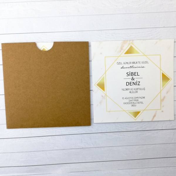 | Açıklama | Retro Davetiye 443'ün zarfı kalın gramajlı kraft kağıttan yapılmıştır. |