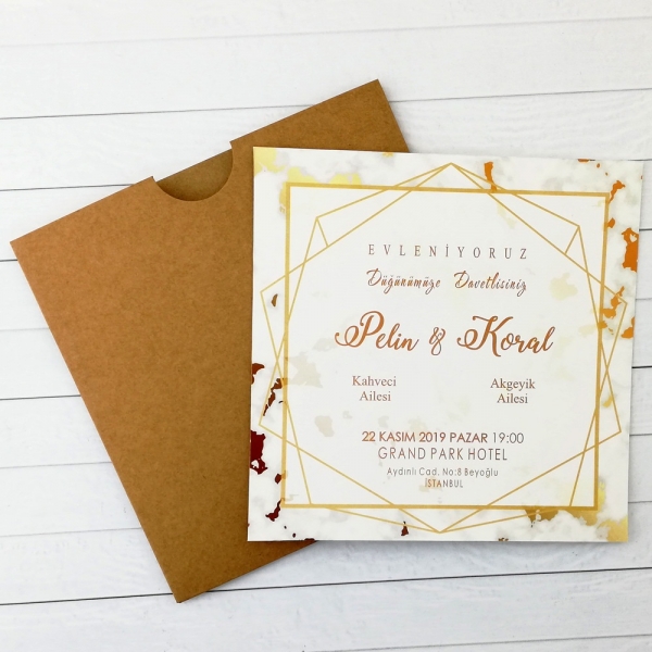 | Açıklama | Retro Davetiye 445'in zarfı kalın gramajlı kraft kağıttan yapılmıştır. |