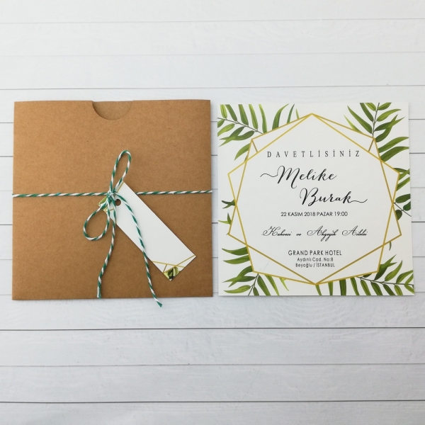 | Açıklama | Retro Davetiye 453'ün zarfı kalın gramajlı kraft kağıttan yapılmıştır. |