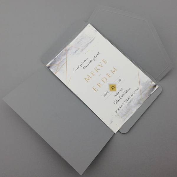 | Açıklama | Retro Davetiye 463'ün zarfı kalın gramajlı gri kağıttan yapılmıştır. |