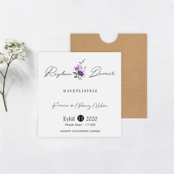 Açıklama Retro Davetiye 521'ün zarfı kalın gramajlı kraft kağıttan üretilmiştir.
