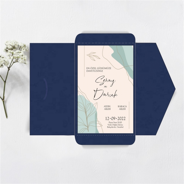 | Açıklama | Retro Davetiye 542'nin zarfı kalın gramajlı lacivert kağıttan yapılmıştır. |