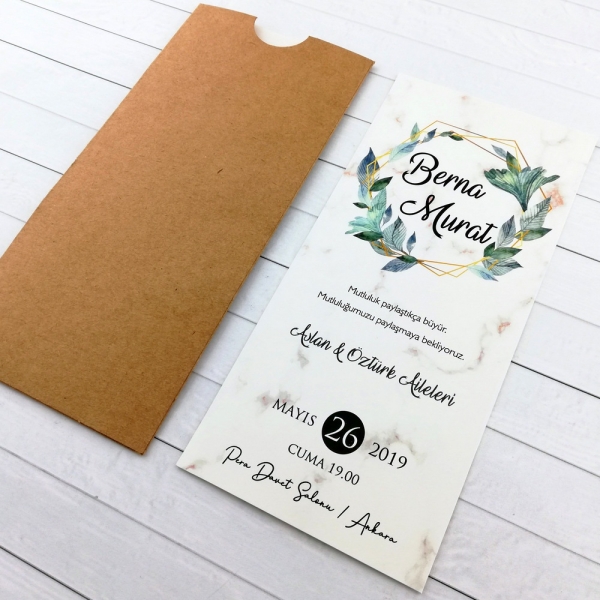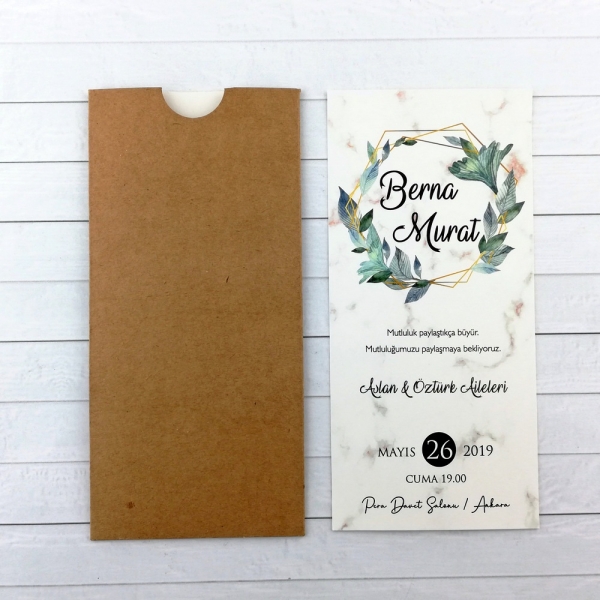 Açıklama Retro Life Davetiye 1306'ün zarfı kalın gramajlı kraft kağıttan yapılmıştır.